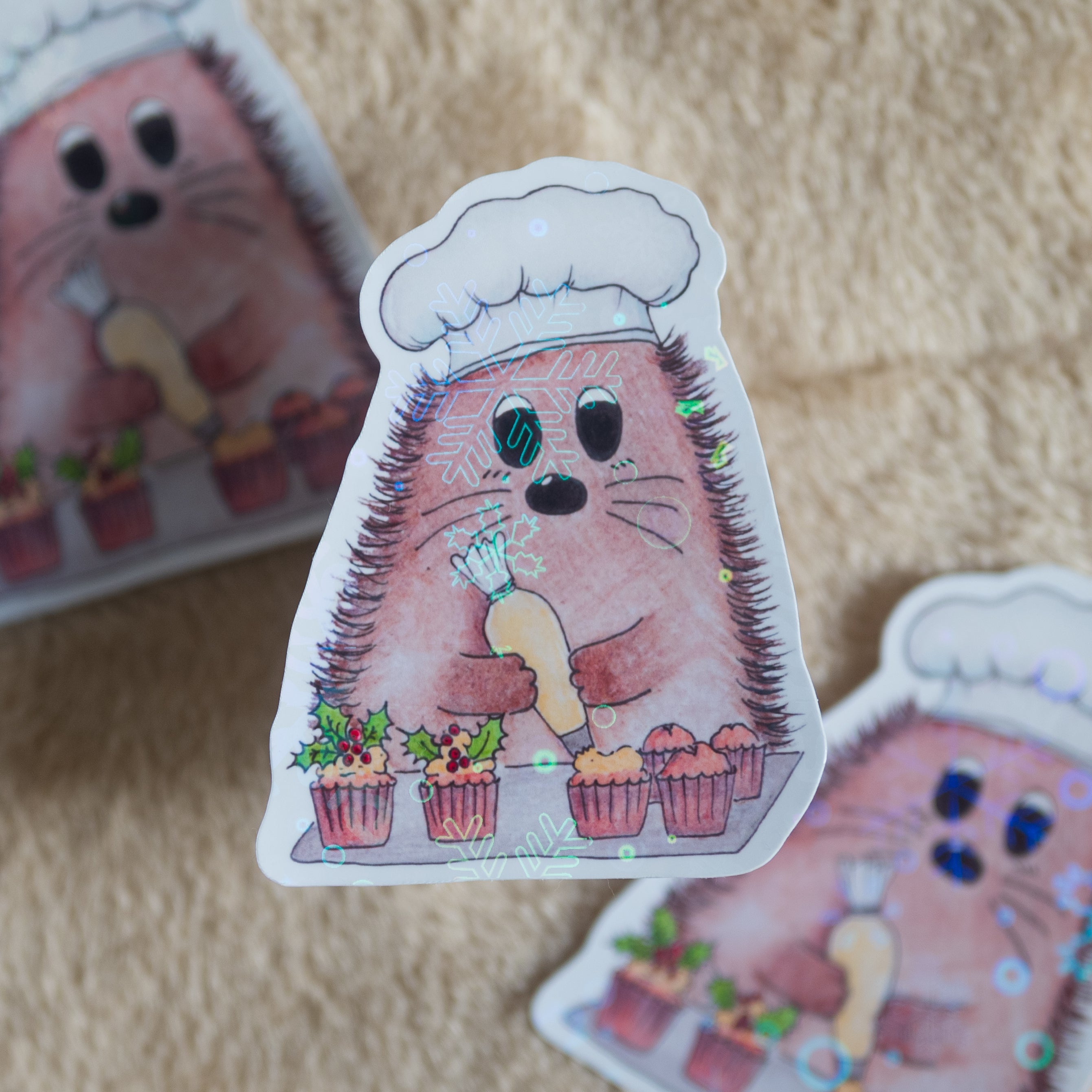 Pastry Chef Hedgehog Holographic Sticker 🧁